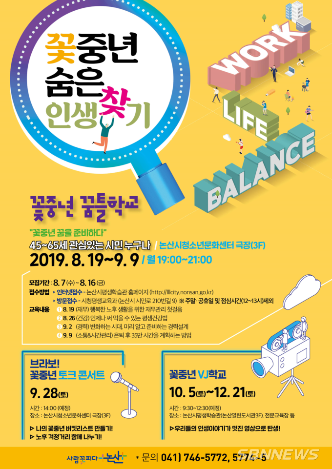 [sbn뉴스=논산] 김호진 기자 = 충남 논산시(시장 황명선)는 오는 16일까지 인생이모작 준비를 위한 ‘꽃중년 꿈틀학교’ 학습자를 모집한다.