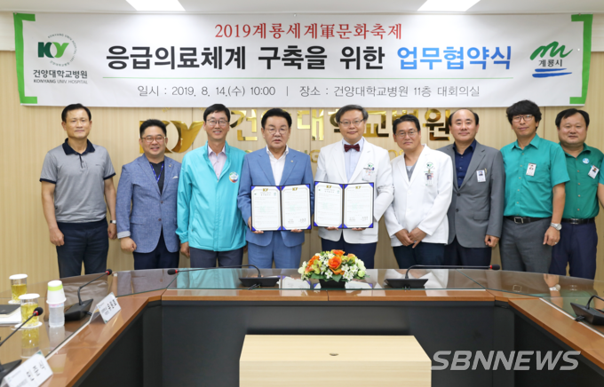 [sbn뉴스=계룡] 김호진 기자 = 충남 계룡시는 14일 건양대학교병원과 2019계룡세계軍문화축제의 성공적인 개최를 위한 업무협약을 체결하고 상호협력 해 나가기로 했다.