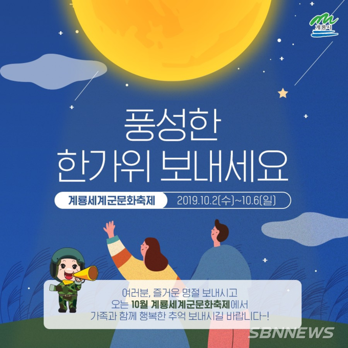 [sbn뉴스=계룡] 김호진 기자 = 충남 계룡軍문화발전재단(이사장 최홍묵)은 ‘2019계룡세계軍문화축제’가 10월 2일부터 6일까지 계룡대 활주로를 중심으로 엄사, 금암 등 시내 일원에서 총 7개 분야 35종의 프로그램을 선보인다고 밝혔다.
