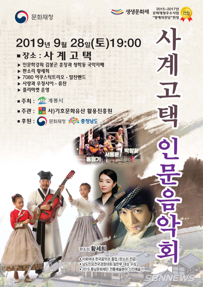 [sbn뉴스=계룡] 김호진 기자 = 충남 계룡시는 오는 28일 두마면 사계고택에서 시민과 함께하는 인문음악회를 개최한다.