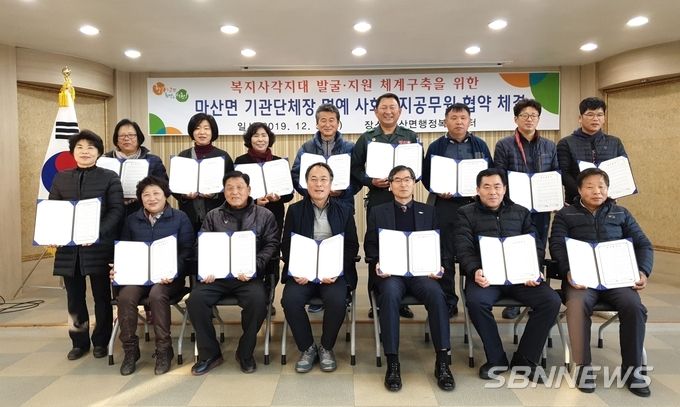 [sbn뉴스=서천] 나영찬 기자 = 충남 서천군 마산면(면장 이길량)은 지난 5일 마산면행정복지센터 회의실에서 마산주민자치회, 마산초등학교, 마산면대, 마산자율방범대 등 관내 기관·단체장 20명이 참여한 가운데 복지사각지대 발굴과 지원 체계 구축을 위한 ‘명예 사회복지공무원’ 협약을 체결했다.