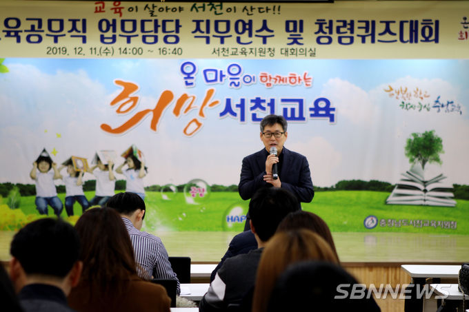 [sbn뉴스=서천] 김다정 기자 = 충남 서천교육지원청은 11일 대회의실에서 교육지원청 및 관내 초중고 교육공무직 업무담당자 34명을 대상으로 ‘2019 교육공무직 업무담당 직무연수 및 청렴퀴즈대회’를 실시했다.