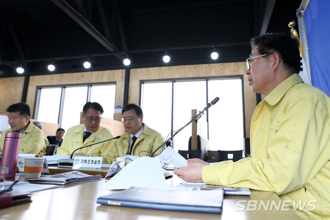 [sbn뉴스=내포] 손아영 기자 = 충남도가 중국 우한 교민 임시생활시설인 아산 경찰인재교육원 인근에 설치한 현장대책본부에서 첫 실국원장회의를 개최하고, 신종 코로나바이러스 감염증 대응 상황과 도정 주요 업무계획 등을 논의했다.