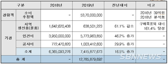 또 생태원은 2018년 대비 16.5% 상승한 74억 원을 지역에 소비한 것으로 집계됐다. 관람객 소비 금액과 합하면 총 128억 원의 소비를 유발한 셈이다.