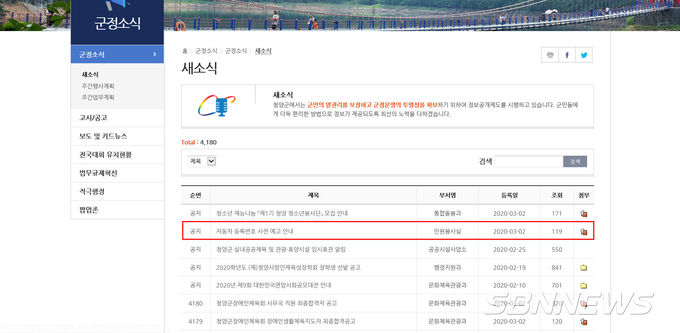 [sbn뉴스=청양] 신혜지 기자 = 충남 청양군이 홈페이지를 통한 자동차등록번호 사전 예고제를 실시한다고 9일 밝혔다.