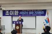 [sbn뉴스=서천] 권주영 기자 = 충남 서천군 조이환 전 도의회 의원(한국독립당)이 오는 6월 치러지는 지방선거에서 서천군수에 도전하겠다는 뜻을 공식화했다. 조 전 의원은 지난 5일 문예의 전당 2층 교육실에서 기자회견을 열고 서천군수 출마를 선언했다. 그는 이 자리에서 인구 감소와 지방소멸 위기에 직면한 서천의 현실을 지적하며, ‘떠나는 서천에서 돌아오는 서천’으로 탈바꿈시키겠다는 포부를 밝혔다. 이를 위한 구체적인 실천 방안으로 조 전 도의원은 ‘서천을 살리는 10가지 미래 비전’을 제시했다. 핵심 공약으로는 지역 경제를 견인할 선도기업으로 ‘중입자암치료센터 및 생명의료과학대학교’ 유치를 꼽았다. 아울러 환자와 보호자가 머물 수 있는 ‘최고급 호텔 앤 리조트 관광단지’를 조성해 체류형 인프라를 구축하겠다고 설명했다. 먹거리 산업과 관련해서는 ‘최첨단 육상 양식장과 스마트팜 단지’를 통해 무농약·무항생제 친환경농수산물을 생산하고, ‘한국 전통 장 연구소와 연수원’을 유치해 항암식품 및 건강식 레시피를 개발하겠다는 계획을 내놨다. 또한 여기서 생산된 질 좋은 농수산물을 서천특화시장에 공급해 명품시장으로 재탄생시키겠다는 구상도 덧붙였다. 정주 여건 개선과 문
