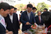 [sbn뉴스=논산] 김호진 기자 = 충남 논산시(시장 황명선)와 김종민 국회의원(더불어민주당, 충남 논산·계룡·금산)이 강경젓갈과 대추 등 특산물 홍보에 나서며, 상인들의 수익 증대를 위해 발로 뛰는 열정을 보이고 있다. 시에 따르면 5일부터 6일 이틀간 국회도서관 앞 광장에서 김장철 맞이 전국 최고의 맛을 자랑하는 강경젓갈과 연산 대추를 홍보하는 판촉행사를 갖는다. 이번 판촉 행사는 지난 9월 중순 소비자들의 불안감 해소와 명품 강경젓갈의 명성을 위해 조개젓 판매 중단을 결정한 것에 이어 지난 10월 아프리카 돼지열병 확산방지를 위한 강경젓갈축제 및 대추축제 취소에 따라 판매량 급감으로 인한 상인의 피해를 최소화하고자 마련된 특단의 조치라고 할 수 있다. 5일 오전 11시부터 시작된 판촉행사에는 황명선 논산시장을 비롯해 김두관, 김종민, 박지원, 서영교, 송영길 국회의원, 문수혁 해수부장관, 조용훈 논산시의원, 박승헌 향우회장 등 각계각층의 인사들이 힘을 보태며 성황을 이뤘다. 황명선 논산시장은 소비자 불안해소를 위한 판매 중단과 축제 취소로 인해 어려움을 겪고 있는 상인들에게 격려를 전한 것은 물론 직접 마이크를 들고 시민들과 만나 강경젓갈과 연산대추