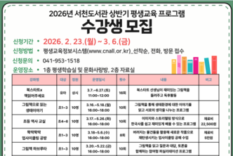 [sbn뉴스-서해신문·서해방송] 문화관광재단, 2026 찾아가는 문화나눔 공연예술단체 공모 등 12일 충남 서천군 기관소식을 전한다. ◇문화관광재단, 2026 찾아가는 문화나눔 공연예술단체 공모 (재)서천문화관광재단 은‘2026 찾아가는 문화나눔’ 사업 추진을 위한 공연예술단체를 공모한다. 이 사업은 문화공연 관람 기회가 적은 서천군 소외지역(면 단위 마을) 주민들의 문화 향유 기회 확대를 위해 추진된다. 관내 공연예술단체 중 대중예술, 연예, 국악 등 분야의 단체를 선발하며, 접수는 이달 19일부터 27일까지 진행된다. 단체 선정기준은 서천군에 주소지를 둔 단체로 5인 이상의 전문예술인으로 구성되어 최근 3년 이내 공연 활동 경력과 60분 이상 공연이 모두 가능한 단체이며, 최종 선정된 단체는 소정의 출연료와 공연에 필요한 음향, 공연장소 등의 지원을 받게 된다. 올해는 서천읍과 장항읍을 제외한 서천군 면 지역 5개~7개 마을을 선정하여 진행되며, 자세한 사항은 서천문화관광재단 홈페이지에서 확인할 수 있다. 서천문화관광재단 관계자는 “이번 사업을 통해 지역민의 문화 향유 기회 제공과 관내 예술단체의 공연창작 활성화 및 질적 수준이 향상되는 기회가 될 것”이